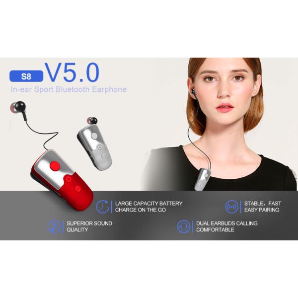 Mobile Phones Mono Retractable Earbud Using Clip Retractable function Wireless Bluetooth Earphones with Mic
